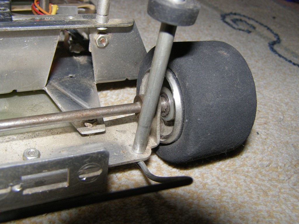 The -then new- front wheel drive promised a previously unknown track stability. With a width of 180 mm and a wheelbase of 205 mm, it is the widest 1/12th scale at all. At the front wheel are thin foam rubber tires mounted, while on the rear -probably for purely aesthetic reasons- nearly twice as wide tires are mounted.