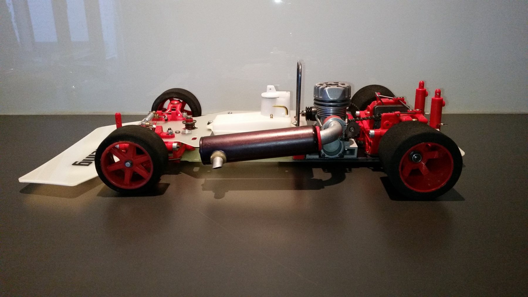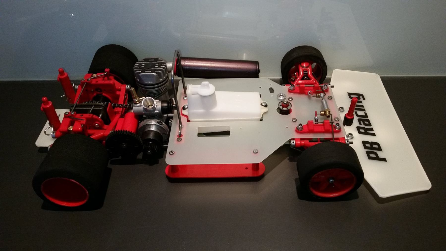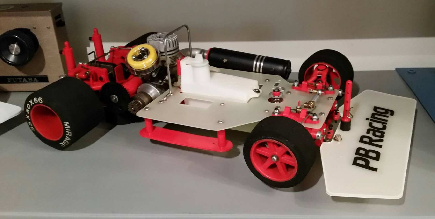 Beautiful car with genuine PB clutch with center axle on bearings. Front shock silver 2nd generation like for the wining car at 83 Worlds.