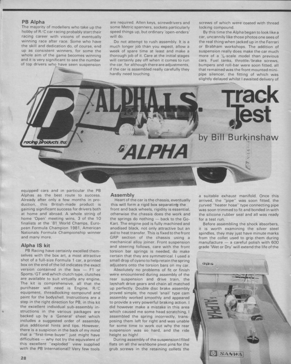 PDF File – Review of the PB Alpha 82 from June/July ’82 issue of Model Cars.