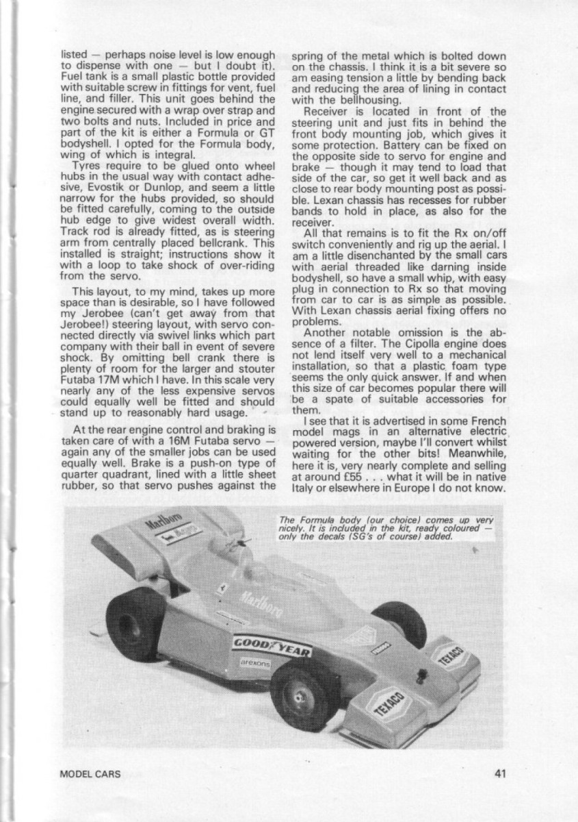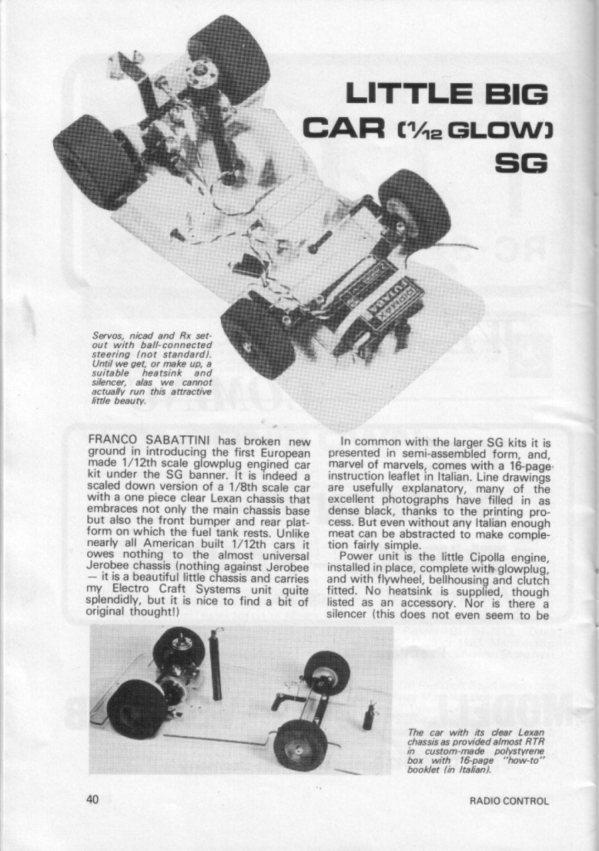 The SG 1/12 Scale Glow Car 1/12th scale nitro onroad car of 1978 reviewed by Radio Control Model Cars